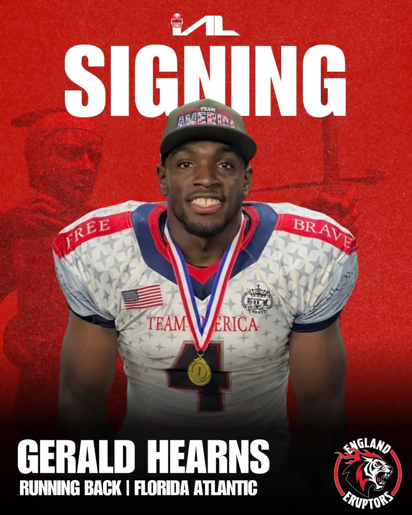 The England Eruptors have made another major statement, officially signing former FAU football standout Gerald Hearns and adding NCAA experience to a roster that is quickly taking shape.