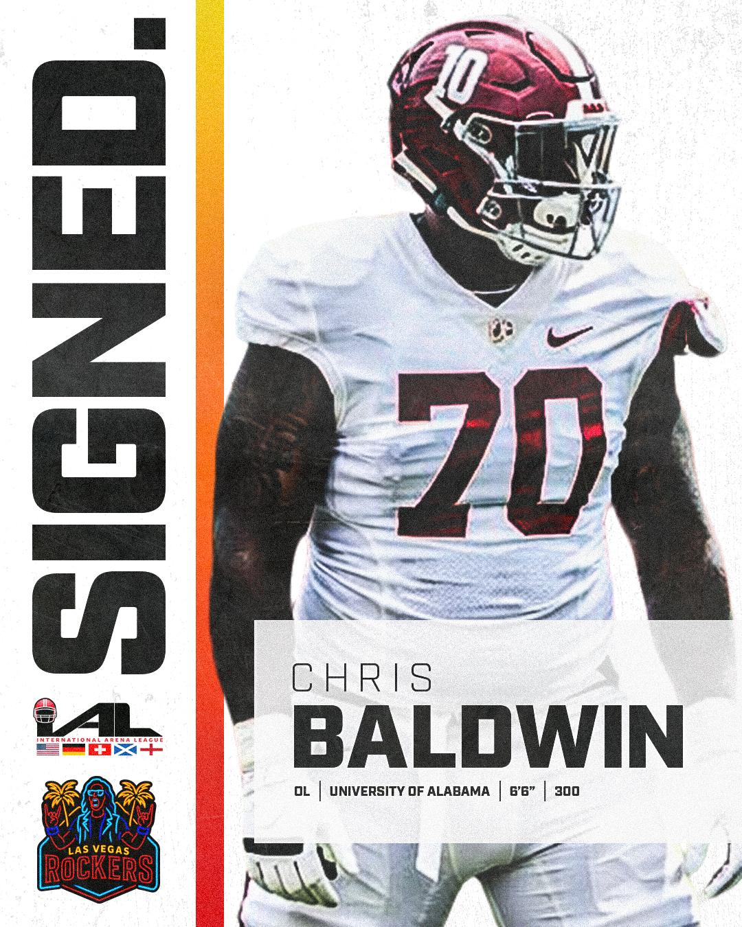 March 25, 2026 (Las Vegas, Nevada) International Arena League, Las Vegas Rockers announced the signing of defensive back Chris Baldwin, adding depth and experience to the team's secondary as they prepare for their inaugural season in the International Arena League.