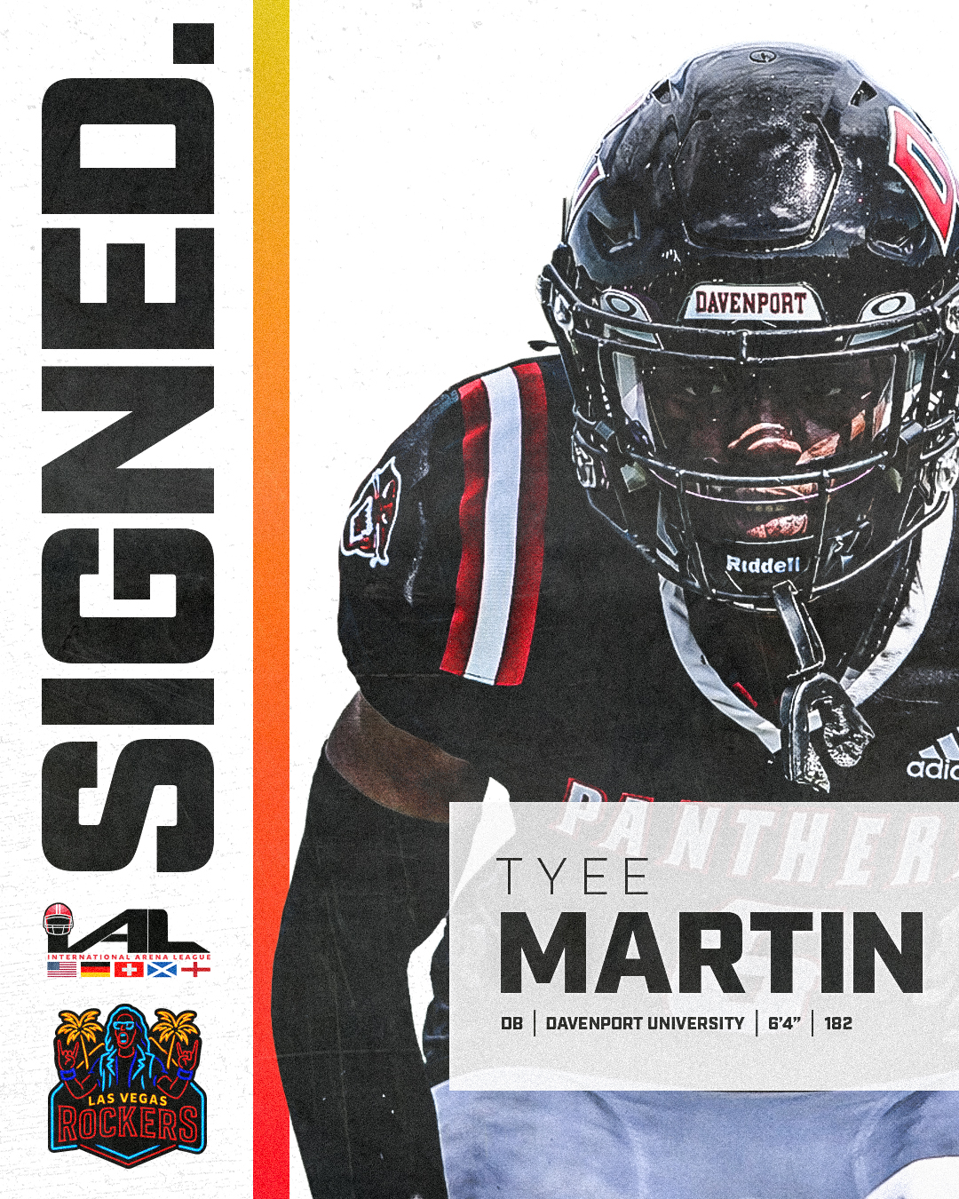 March 25, 2026 (Las Vegas, Nevada) International Arena League, Las Vegas Rockers announced the signing of defensive lineman William Martin III, adding a formidable presence to the defensive front.